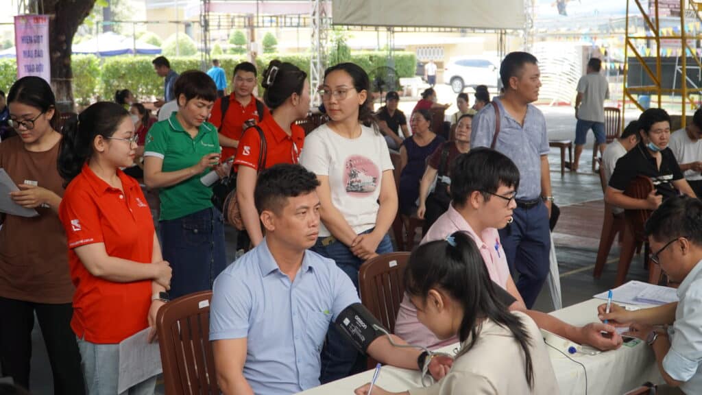 Các tình nguyện viên trong tâm thế vui vẻ, thoải mái trước khi thực hiện các thủ tục kiểm tra sức khỏe.